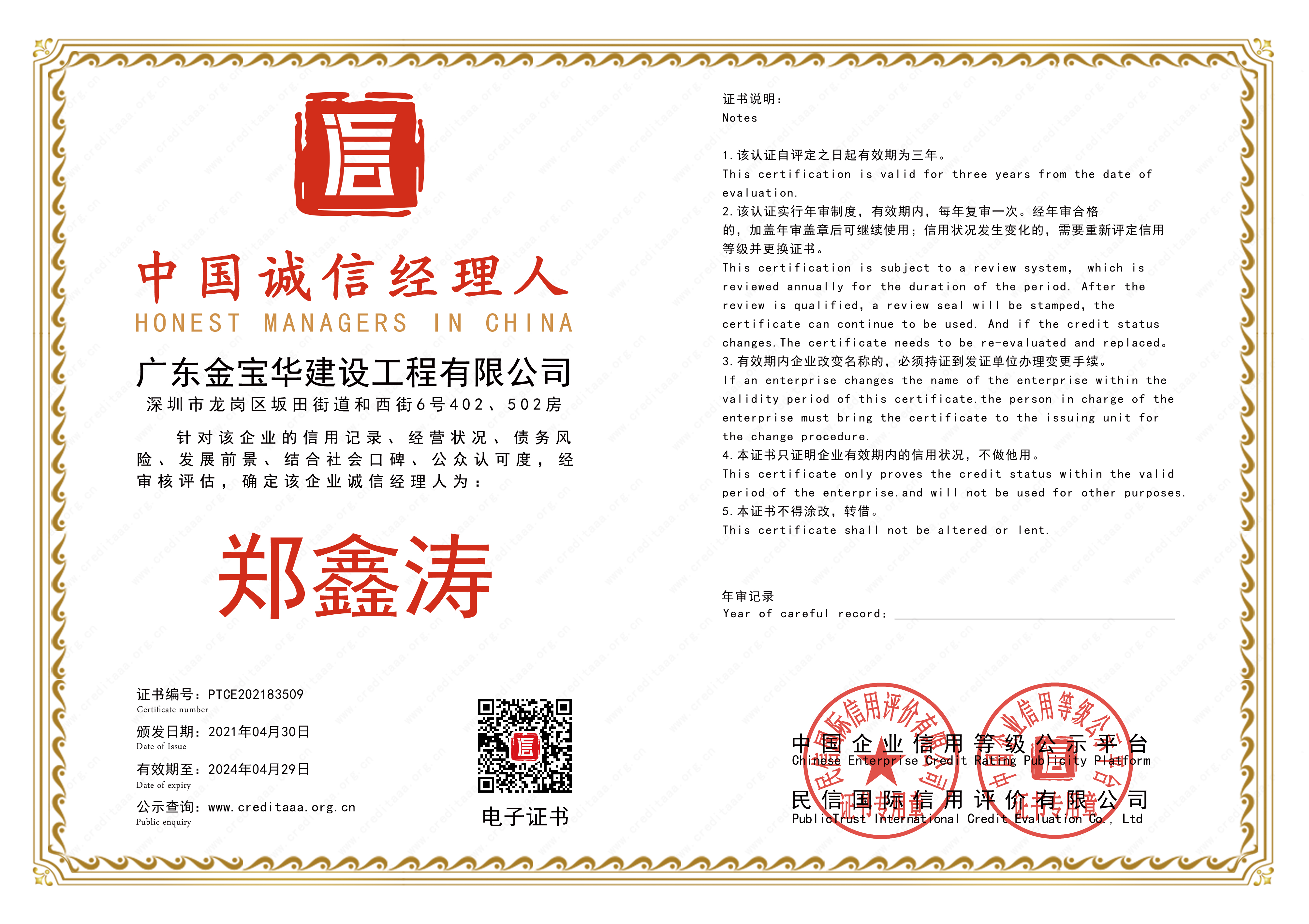 金宝华-资质证书
