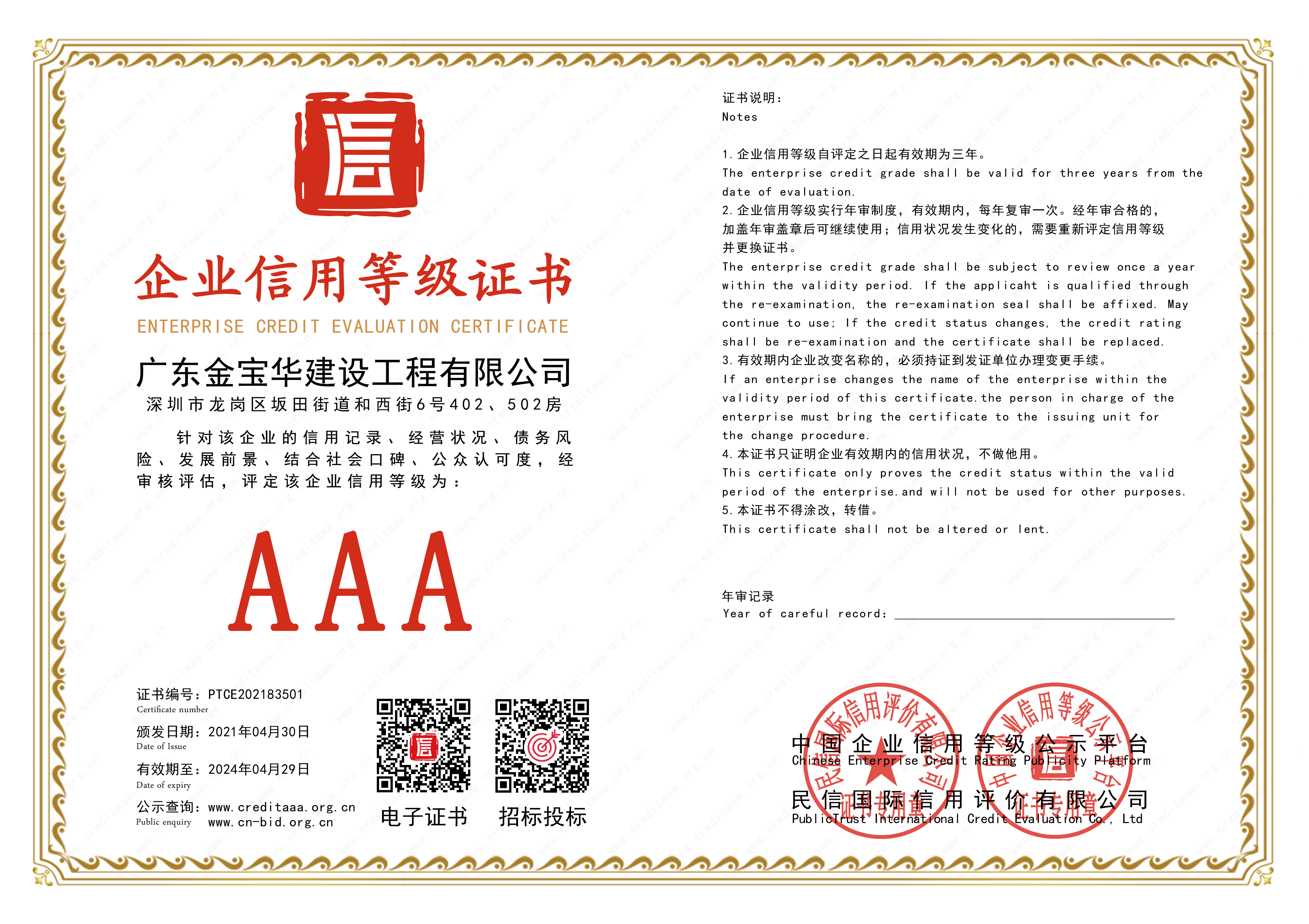 企业信用等级证书